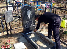Восстановление покосившегося памятника и цветника